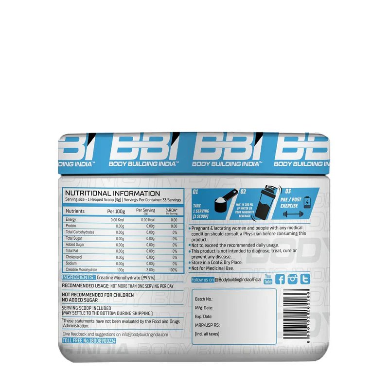 In conclusion, BBI Creatine 100g (33 Servings) is an excellent choice for anyone looking to enhance their muscle gains and improve their workout performance. With its high-quality formulation, proven effectiveness, and ease of use, it truly stands out as the Best Creatine supplement available. Whether you're aiming to increase your strength, speed up recovery, or boost your overall fitness, BBI Creatine has you covered. Don't settle for anything less than the best – choose BBI Creatine and experience the difference for yourself.