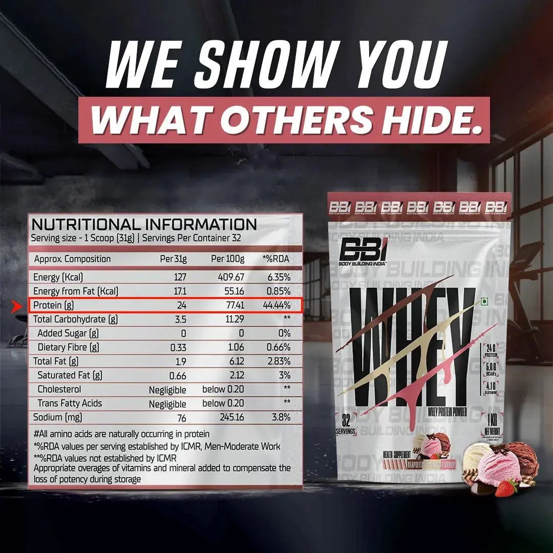 BODY BUILDING INDIA- BBI WHEY PROTEIN powder has been crafted for athletes, fitness enthusiasts, bodybuilders and dieters who want to supplement their nutrition with highest-quality protein.