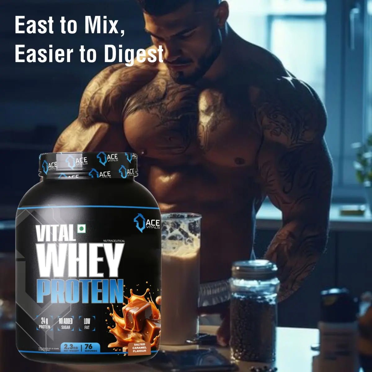 ACE VITALS WHEY PROTEIN powder has been crafted for athletes, fitness enthusiasts, bodybuilders and dieters who want to supplement their nutrition with hig
