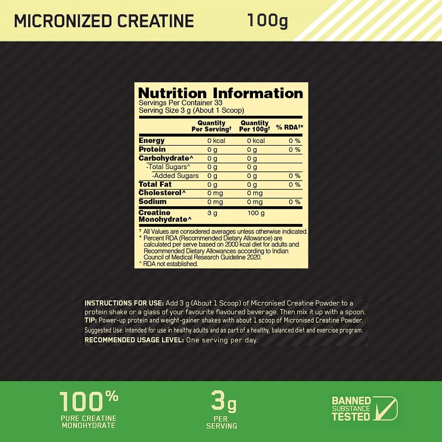 Made in India, in a state-of-the-art manufacturing facility, Optimum Nutrition Micronised Creatine powder is informed choice certified. This assures that the product is regularly tested for banned substances. Trusted by world’s athletes by over 35 years; we make sure that you get the Trusted ON quality, always, no matter where!