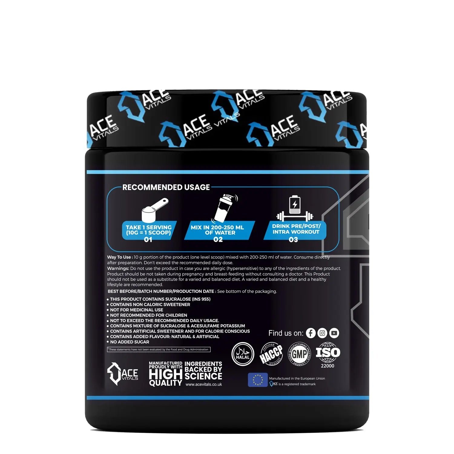 This supplement is tailored for both casual gym-goers and serious athletes. Because it is manufactured in the European Union, you can trust the quality and effectiveness of Ace Vitals AceFuel. The solution is easy to integrate into any fitness regime, whether you mix it in your pre-workout shake or take it post-exercise. Therefore, you will find it a valuable ally in your journey toward peak physical performance.
